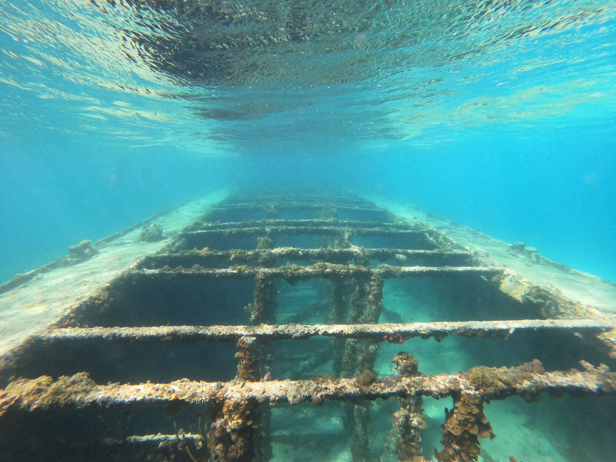 Anciennement utilisé pour le transport de sable, cette barge a été coulé volontairement, il y a maintenant une trentaine d’années, dans l’objectif de devenir un nouveau refuge pour les poissons du Grand cul-de-sac Marin.